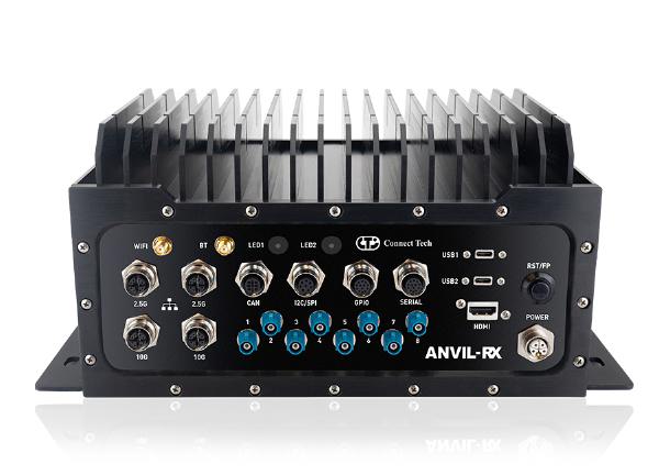 Anvil-RX takes rugged AI and high compute performance to new heights. Connect Tech's Anvil-RX is a rugged embedded system powered by the NVIDIA Jetson AGX Orin. Fully IP67 rated, with M12 and sealed PC connectors, this powerful edge system can be deployed for mission critical applications in harsh environments. The Anvil-RX is ideal for AMR, robotics, agriculture, and industrial applications.
