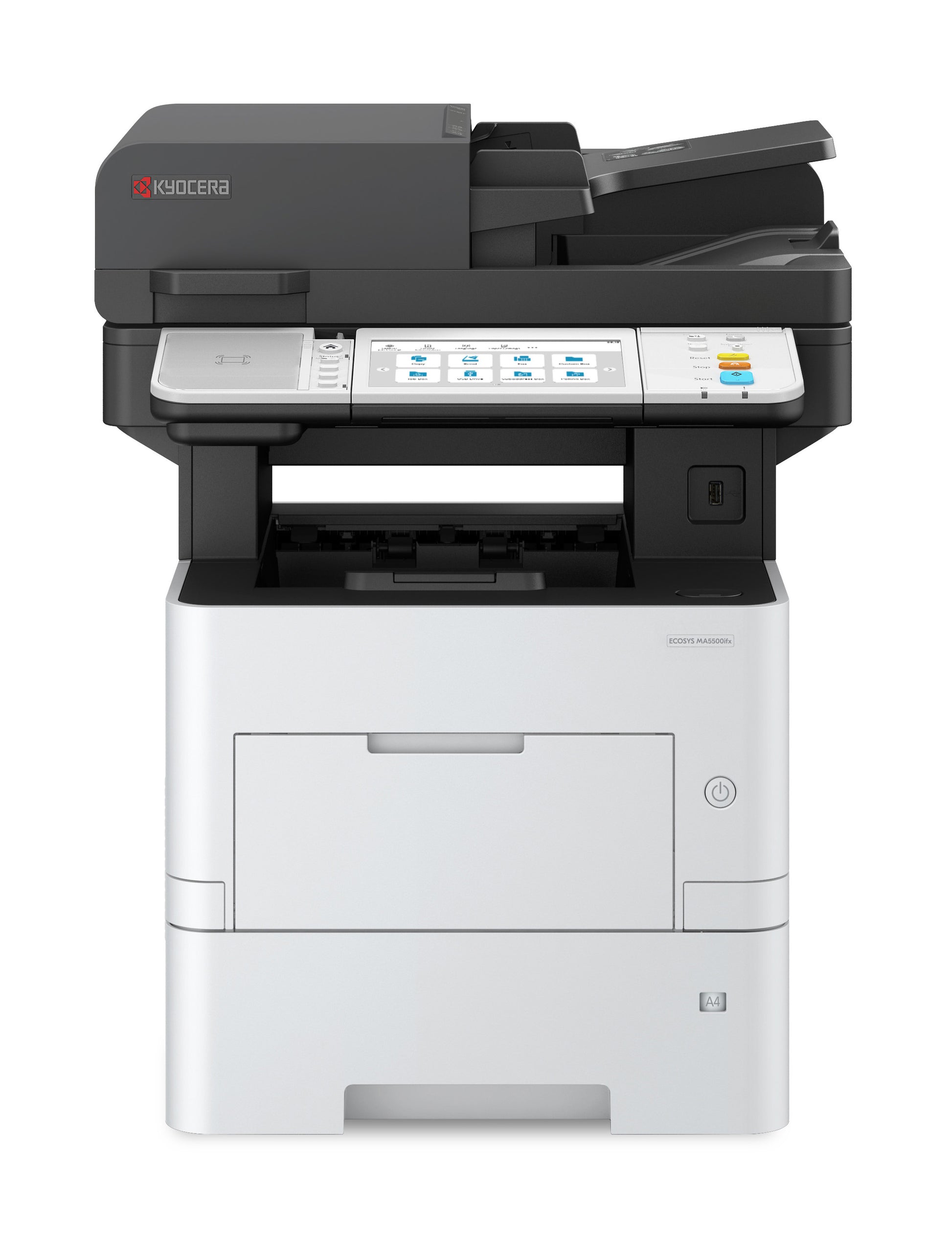 The ECOSYS MA5500ifx brings together priceless reliability and superb quality. This monochrome multifunctional printer elevates workflows while keeping business data safe while its compact size and energy efficiency make it the perfect fit for small to midsize workgroups.