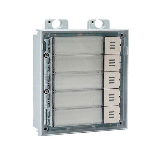 A module with 5 mechanical quick dial buttons. The buttons are backlit and can include nametags. The Axis IP Verso 5 button module is a 5-Button Module features 5 x Backlit Mechanical Buttons to increase the number of Quick-call zones on your Verso Device.