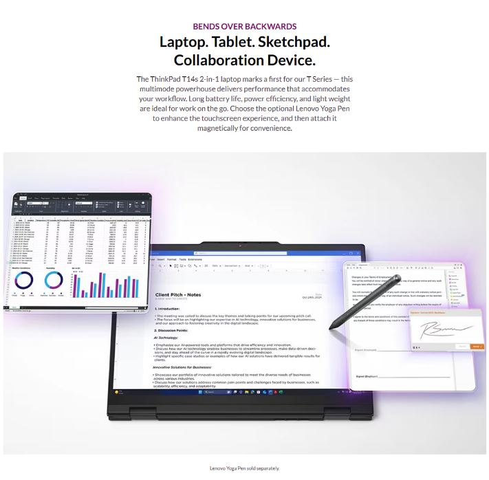 Docking Various docking solutions supported via Thunderbolt™ / USB-C®. For more compatible docking solutions, please visit Docking for ThinkPad T14s 2-in-1 Gen 1
