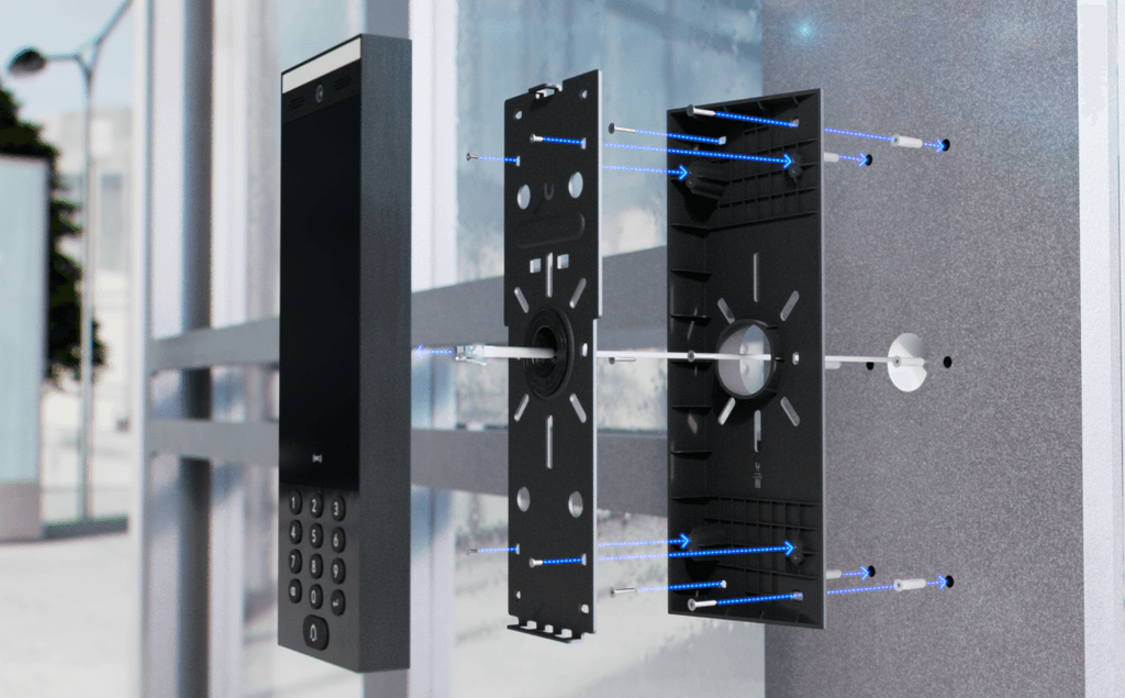 20° inward angle mounting accessory for Intercom that provides an enhanced camera viewing angle. For UA-Intercom.