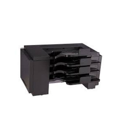 This output option offers four output destinations and installs on the top of the printer. This unit supports up to 100 sheets of paper 20 lb. 75 gsm per bin of A4 A5 A6 JIS B5 ExecutiveFolio Letter Legal Oficio or Statement sizes. Only Paper 16 to 24 lb. 60 to 90 gsm may be used with this unit. Up to three units may be installed. Any combination of Offset Stacker and 4-Bin Mailbox for up to a total of 3 devices may be configured. The 4-Bin Mailbox supports bin empty and full sensing.