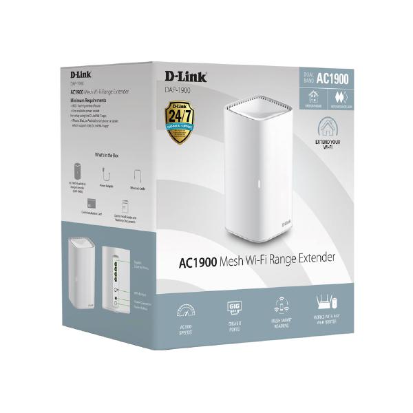 The DAP-1900 is a wireless Extender that boosts your existing Wi-Fi network and rids your home of pesky Wi-Fi dead zones once and for all. Place it anywhere in your home and experience high speed Wi-Fi on all your connected devices.