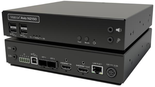 Matrox Avio N2150 IP KVM Extender with IPMX, ST2110 Support. 2x HDMI, 4x USB 2.0, 2x SFP cages, 1x RH45 with PoE+, 3 YR WTY