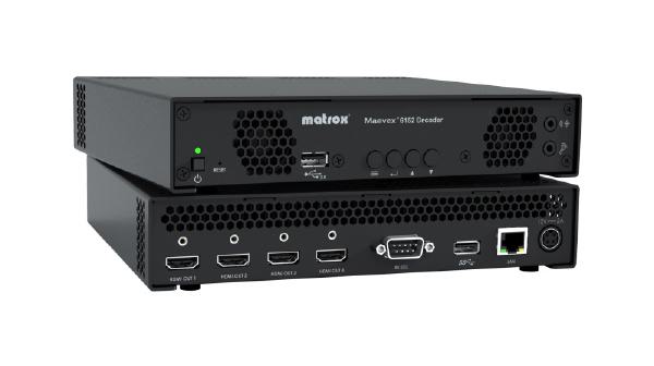The Matrox Maevex 6152 quad 4K decoder complements the entire Maevex product line. Efficiently decoding up to four 4K streams, or many more lower resolution streams, the Maevex 6152 decoder introduces plenty of options and advantages for multi-screen decoding. Built on the same core technology as the award-winning Maevex 6100 Series encoders, the latest addition to the family makes a great solution for control rooms, houses of worship, military, medical applications, digital signage, and in any other environments where multiple screens and content are required. The Maevex 6152 decoder can also decode streams from third-party encoders, cameras, software encoders, or other Matrox products.