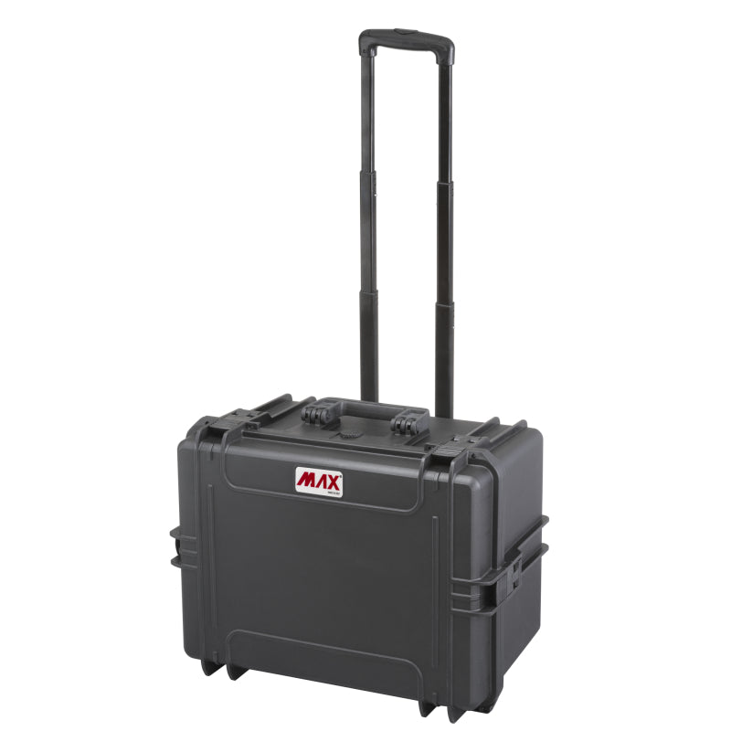 Watertight case on trolley and wheels to transport and protect fragile and valuable objects. Max Cases are created to offer superior protection from water, dust and impacts IP67, ATA300 and military certifications. Cubed foam included.